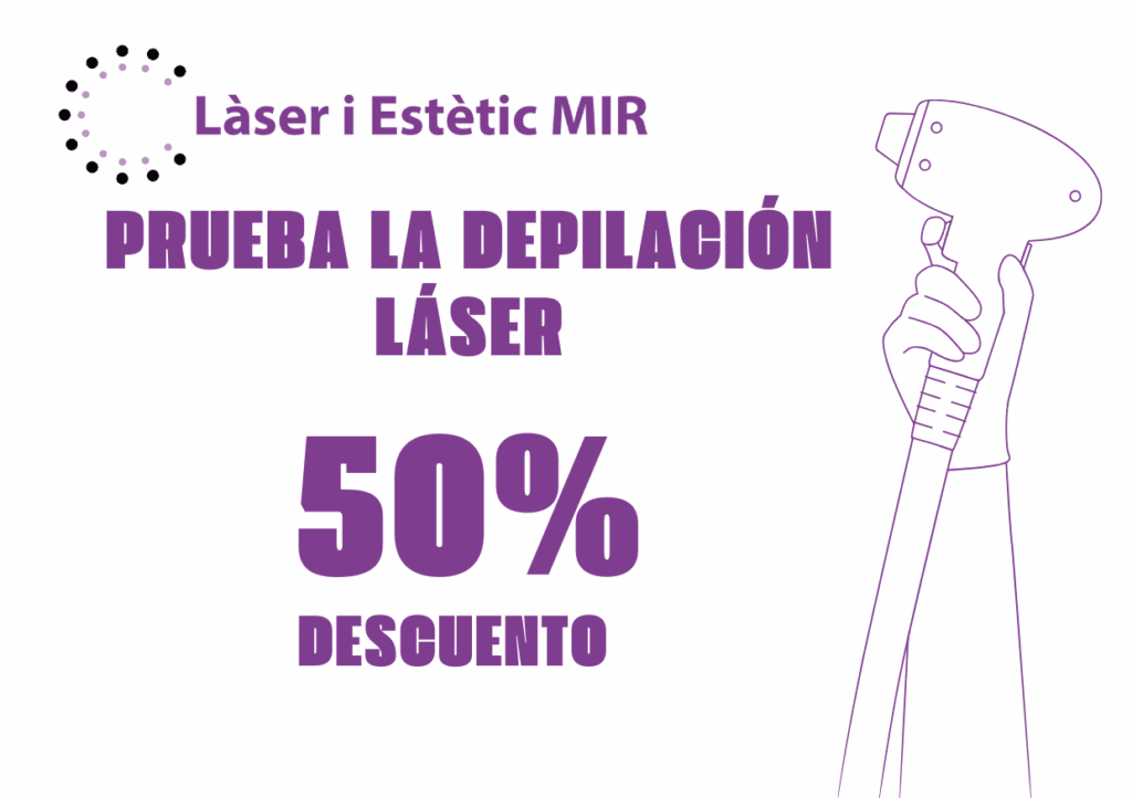 Descuento del 50% sobre el precio oficial de tarifa en depilación láser. Válido para nuevos clientes en el centro que adquieran su primera sesión de depilación láser. Solo 1 descuento por persona. Oferta disponible para personas que se inscriban en este formulario entre el 1 y el 7 de Septiembre. No acumulable a otras ofertas, descuentos o promociones.Plazas limitadas. Consulta el detalle de las condiciones en la sección de bases legales.